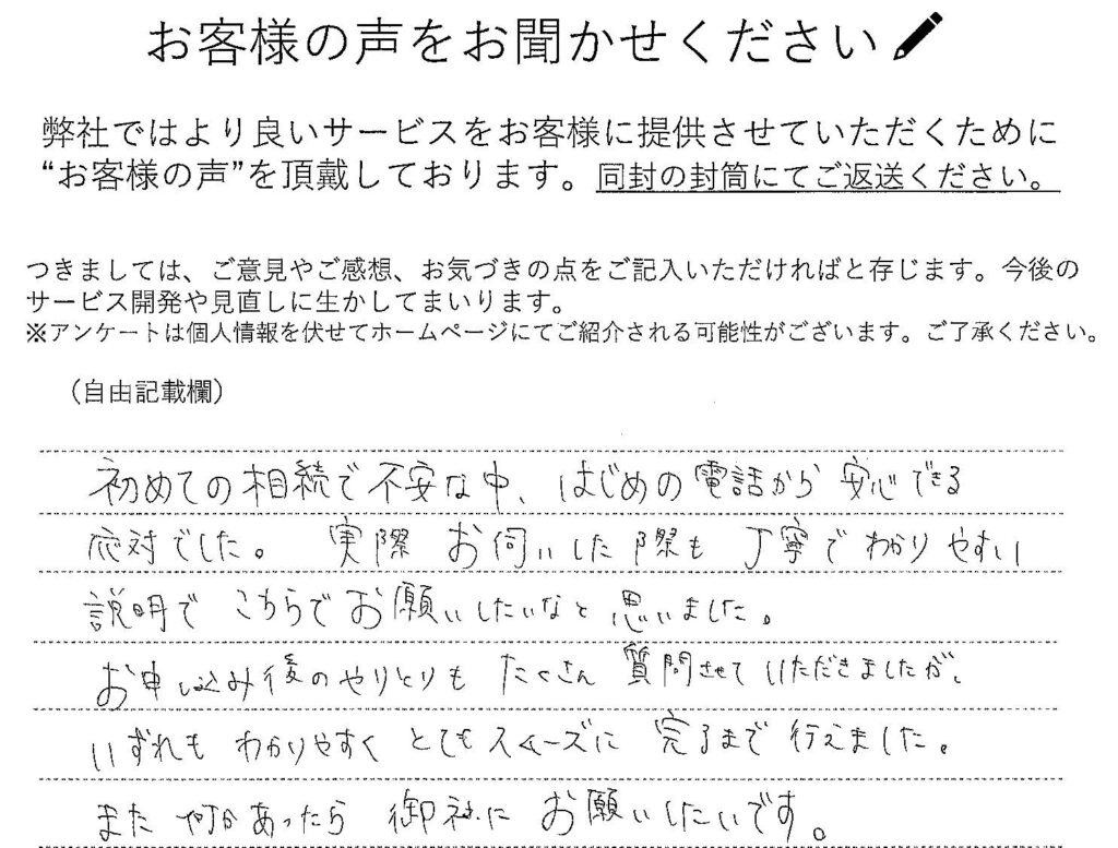 応対でした。実際お伺いした際も丁寧でわかりやすい