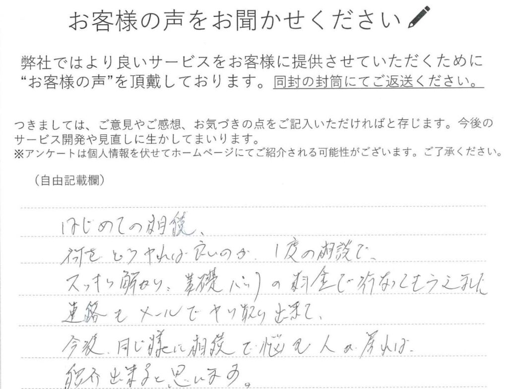 今後、同じ様に相続で悩む人が居れば、紹介出来ると思います。