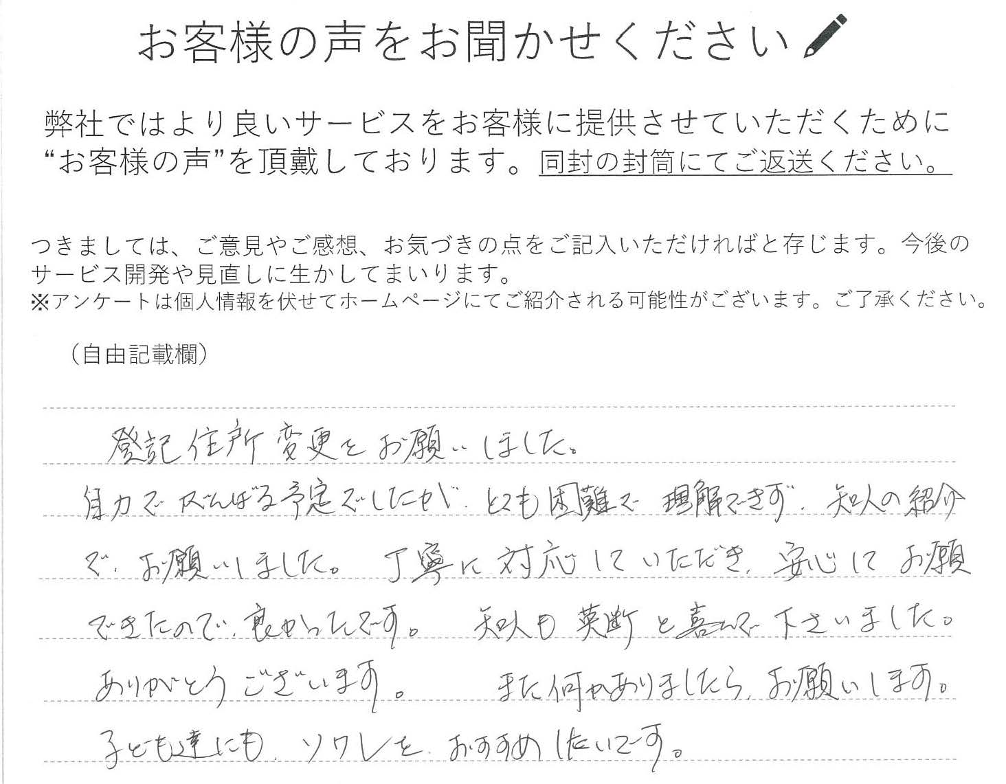 登記住所変更をお願いしました。