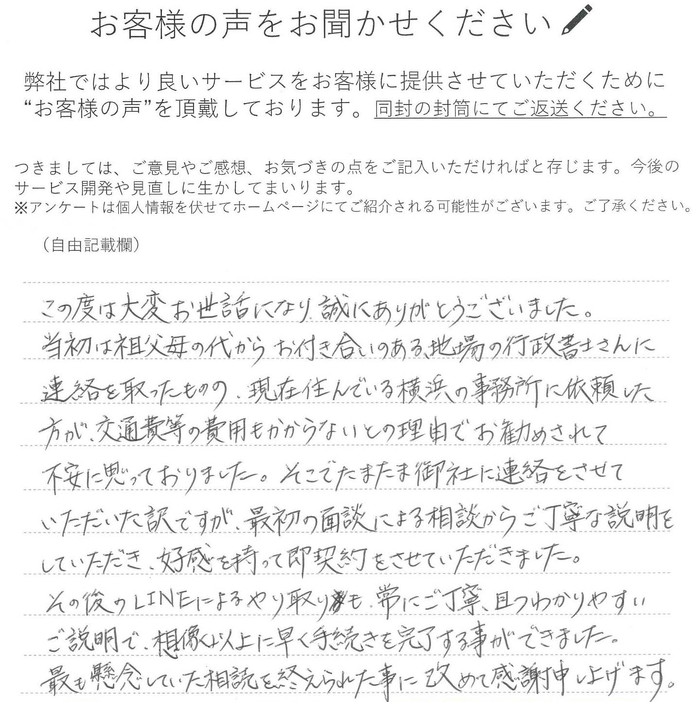 その後のLINEによるやり取りも、常にご丁寧、且つわかりやすいご説明で、