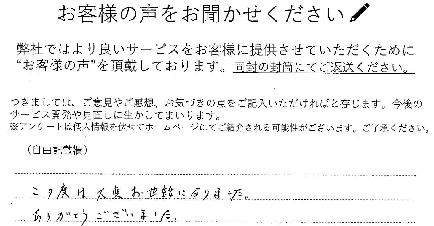 この度は大変お世話になりました。 ありがとうございました。