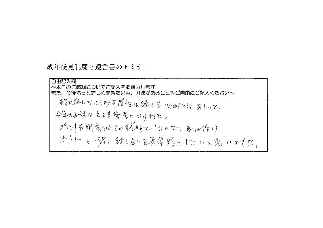パートナーと一緒に話し合いを具体的にしたいと思いました。