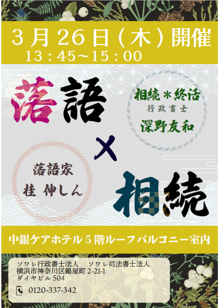 ソワレ事務所では終活、相続の無料相談を行なっています。ご興味ある方はご連絡ください。