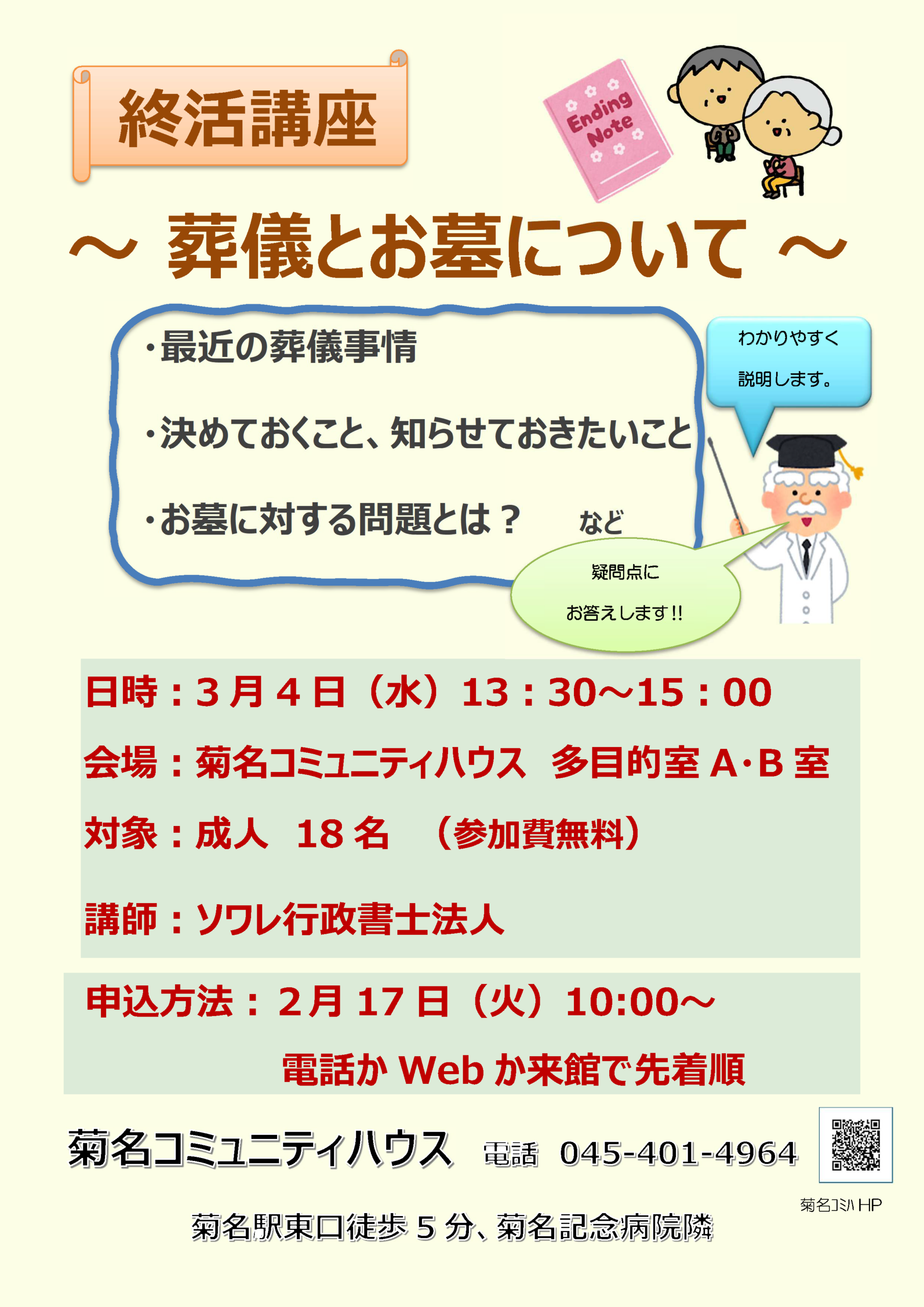 菊名駅東口徒歩5分、菊名記念病院隣の「菊名コミュニティハウス」にて